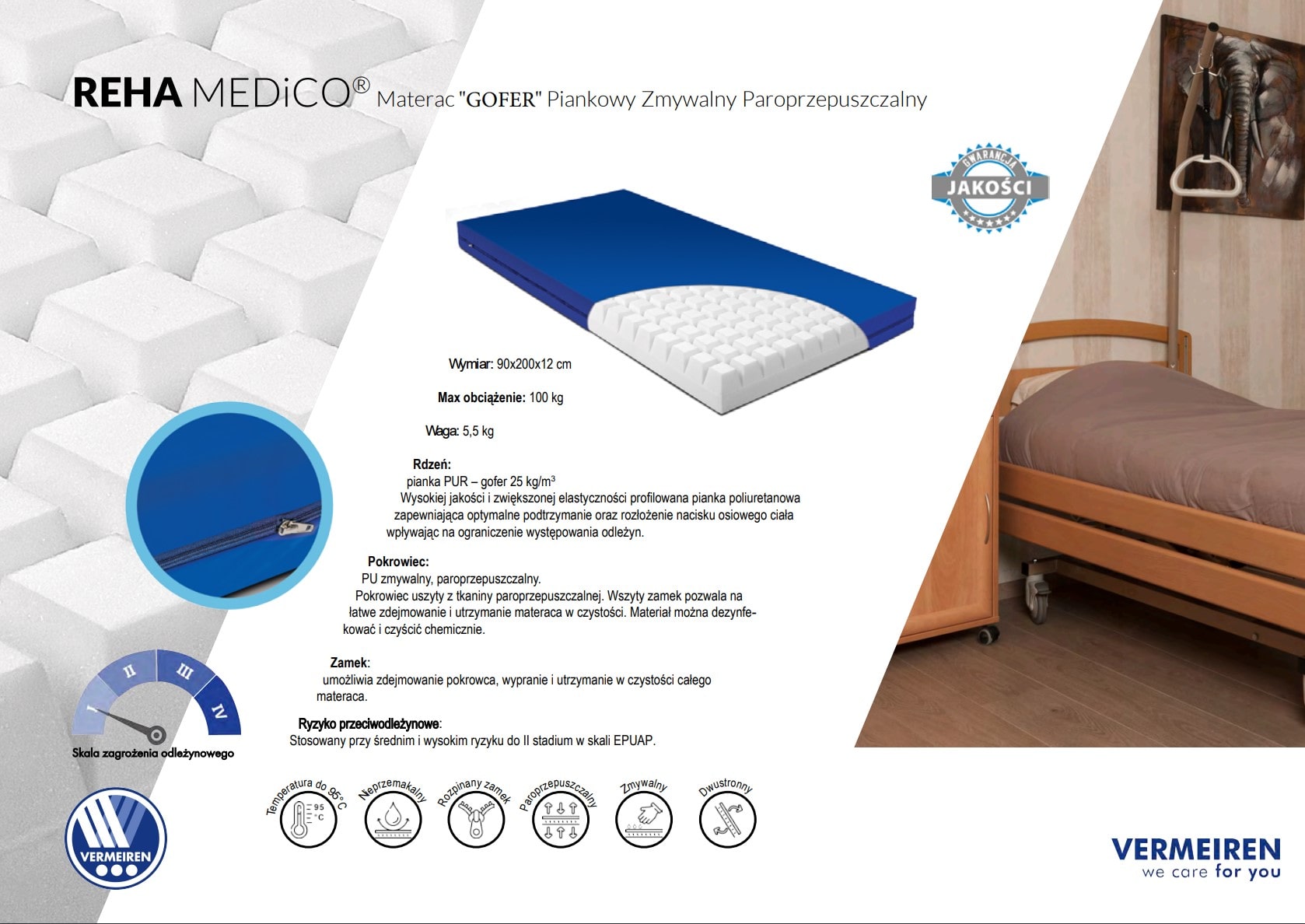 Materac przeciwodleżynowy REHA MEDiCO – ochrona przed odleżynami do I stopnia z możliwością stosowania do II stopnia
