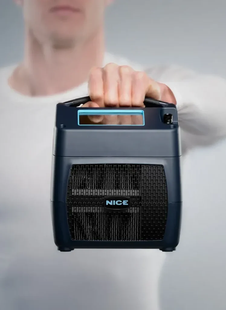 Aparat NICE wykorzystuje anatomicznie dopasowane mankiety terapeutyczne, które wypełniają się zimną wodą i powietrzem, zapewniając jednocześnie efektywne chłodzenie oraz przerywaną kompresję. Dzięki temu proces leczenia staje się skuteczniejszy, a dolegliwości bólowe oraz obrzęki szybciej ustępują.
